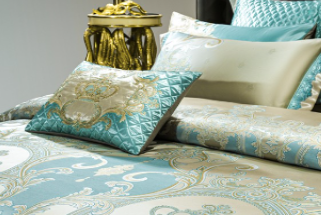 为增加床品款式的丰富性、艺术性,满足顾客多样化需求,家纺品牌会在原材料的基础上增加一些图案设计,而后用印花、提花、绣花等工艺将设计图呈现在床品之上。